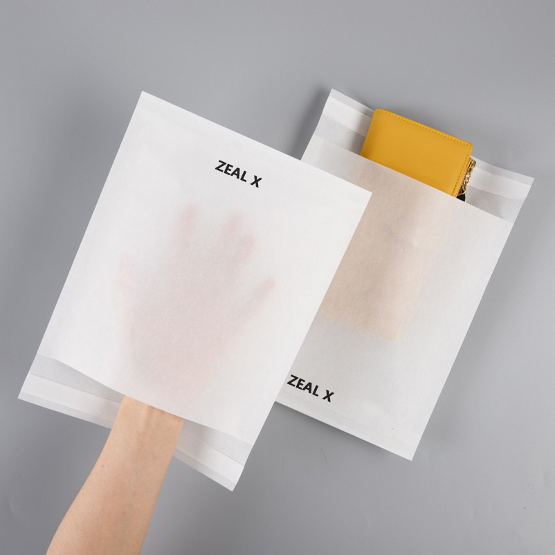 GureFSC ziurtagiria Glassine paper poltsaIraunkortasunarekin gardentasuna uztartzen du, ingurumen estandar handienak topatuz zure jantziak estiloan erakutsiz.